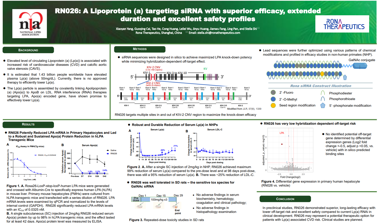Shanghai, China — Rona Therapeutics, a global leading RNA therapy company, announced preclinical data for its self-developed RNA interference (RNAi) therapy RN026 at the National Lipid Association (NLA) Annual Scientific Sessions on May 29 (local time). Preclinical studies revealed that the therapy, targeting lipoprotein(a) (Lp(a))—an independent risk factor for cardiovascular diseases—achieved a 99% reduction in Lp(a) with potential annual dosing regimen in non-human primate (NHP) study.